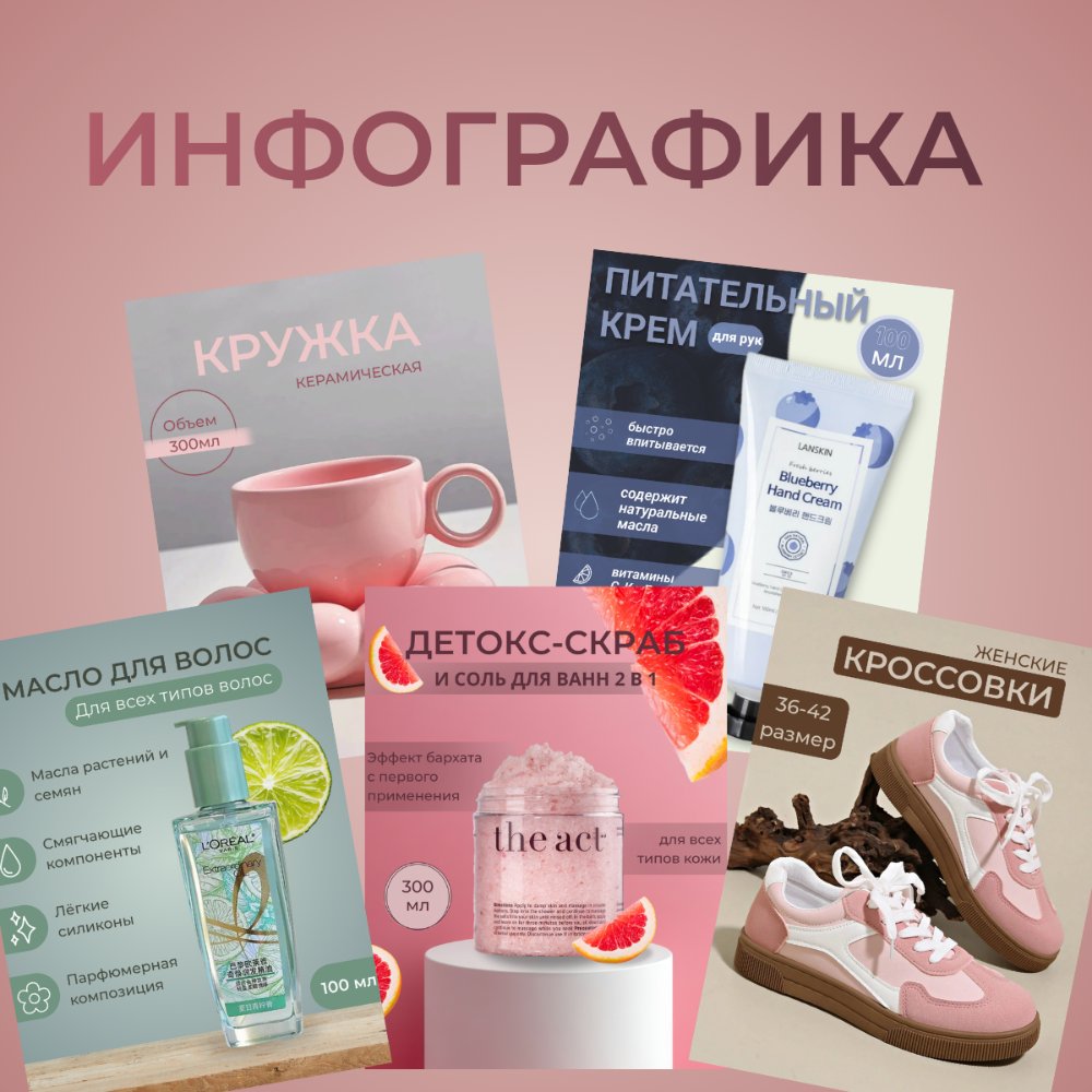 - Я Арзу — дизайнер инфографики для маркетплейсов Wildberries/ Ozon . Помогаю товарам выделяться и продаваться через качественный визуал. Недавно подтвердила свои навыки сертификатом официальной онлайн-школы. !!Работаю только с женщинами!! ПРАЙС •Главный слайд — 400 руб. •Последующие слайды — 350 руб. •Рич-контент (1 блок) — 450 руб. •Логотип — 300 руб. ✨ При заказе более 10 слайдов действуют скидки ✨ Окончательная стоимость зависит от сложности макета и рассчитывается индивидуально после обсуждения ТЗ. Срок исполнения: от 1-3 дней. ‼️ Предоплата 50–100% ‼️ *Внесение правок до 3-х раз — бесплатно* Связь в Telegram: @rzuska ☑️ Также посмотреть мои работы можно в моём Telegram канале : https://t.me/infografikarzu
