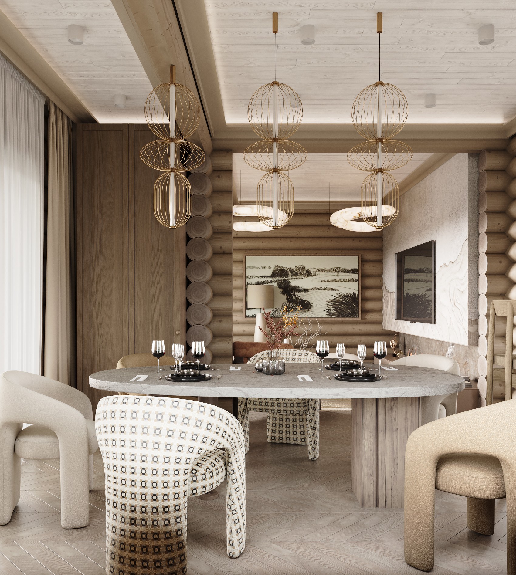 Дизайн загородного дома в коттеджном поселке Марьина гора. Дом выполнен из оцилиндрованного бревна.