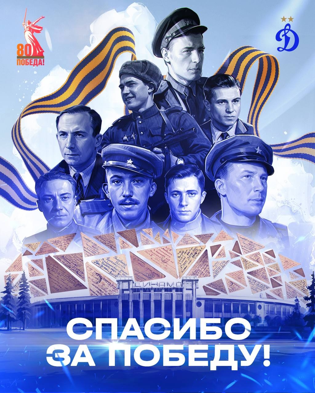 - Возложение цветов динамовцев у мемориальной доски на фасаде «ВТБ Арены» в честь 80-летия Победы