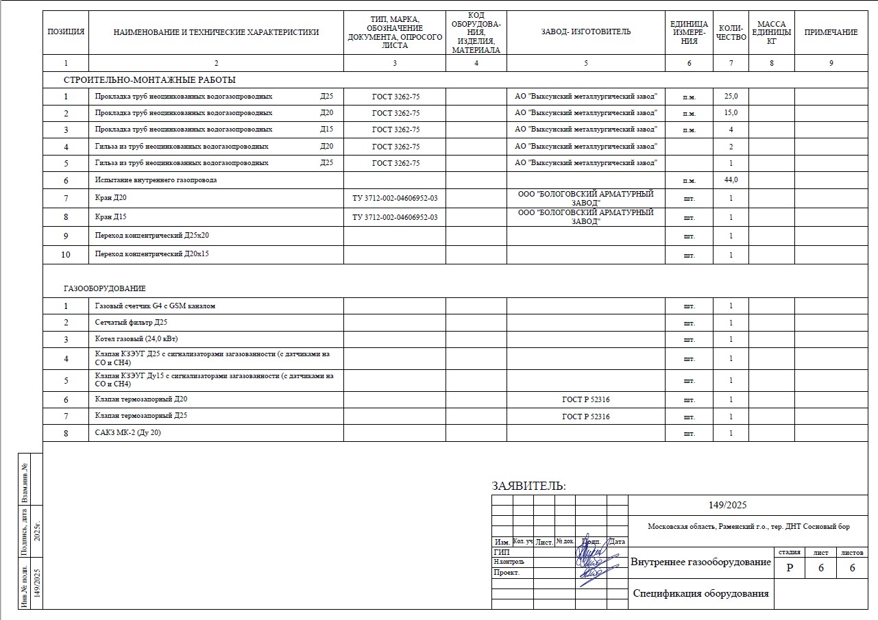 Проект газификации жилого дома