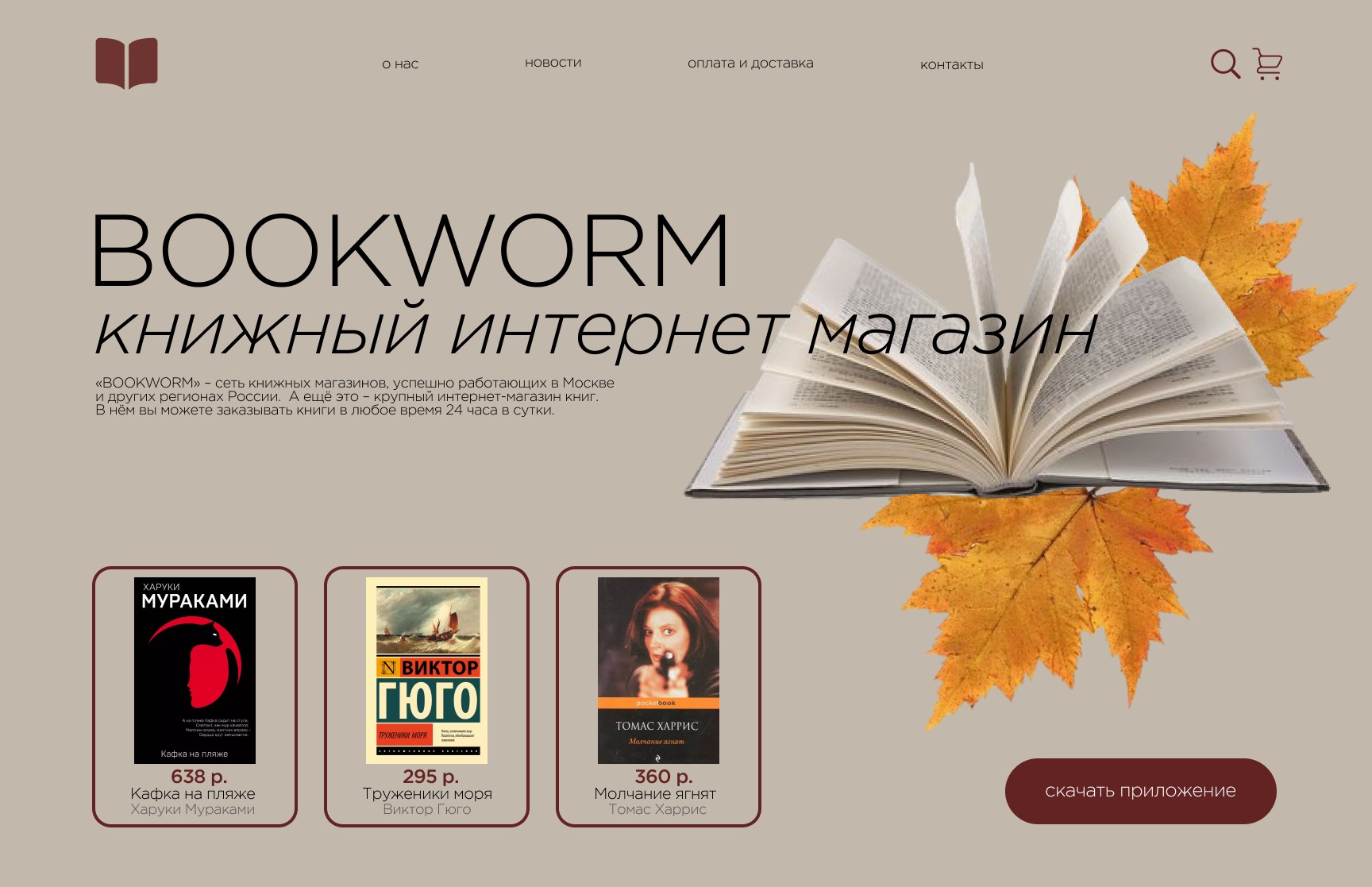 Разработка главной страницы сайта для книжного магазина