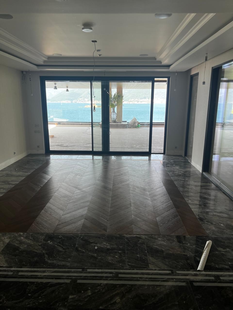 Conjunto de trabajos de acabado, incluyendo colocación de azulejos, trabajos de pintura y montaje de cartón yeso.