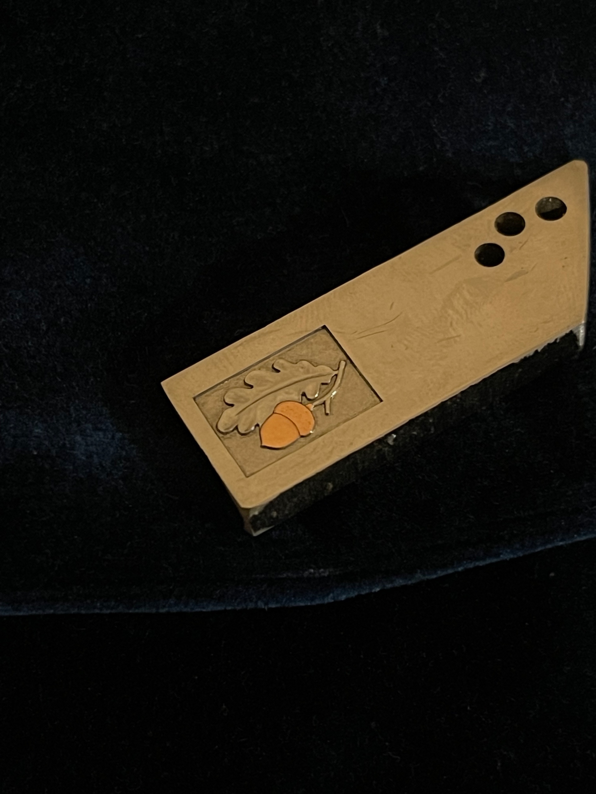 Всечка меди в пластину из нержавеющей стали. Композиция «дуб»